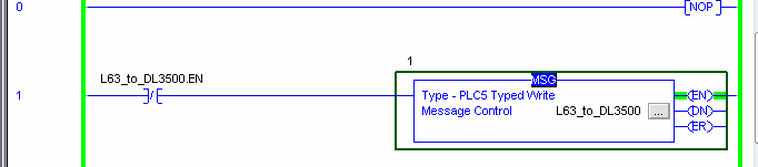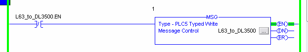 This rung uses PLC5 Typed Write command on DH+ network.
