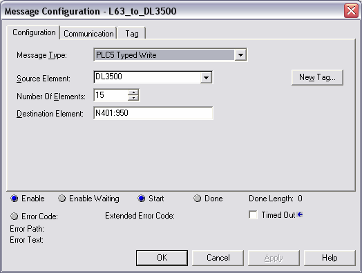 On receiving a PLC-5 Typed Read or Word Range Write Message Command (MC) a DL3500 (or other DL product)