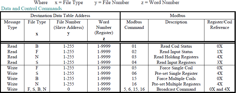 MODBUS DATA AND CONTROL COMMANDS USING PLC-5 TYPED READ / WRITE COMMANDS