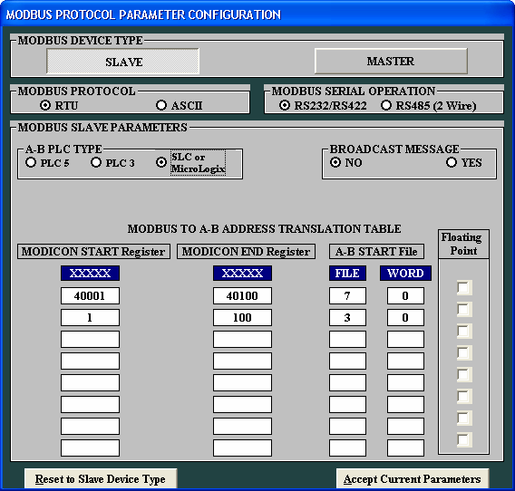 over to Allen-Bradley addresses, the user must enter the following configuration information: