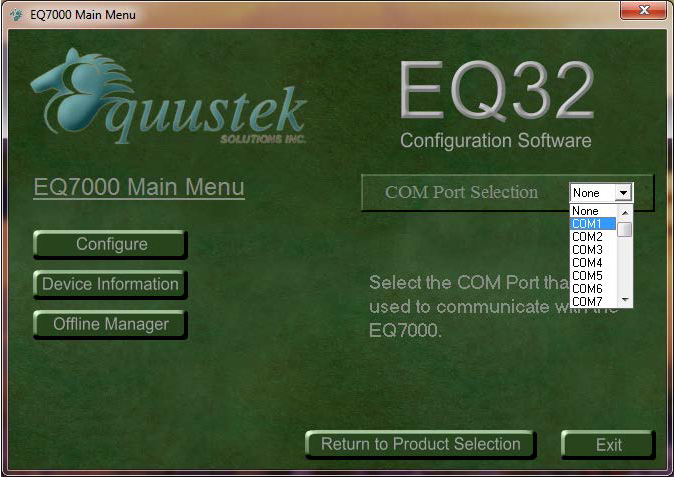 Now that configuration is complete, close the EQ32 configuration program, and press the Reset Pushbutton on the left hand side of the EQ7000.