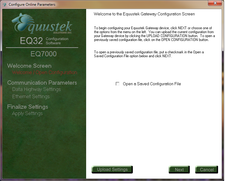 Press the configure pushbutton on the right hand side of the EQ7000 and then click Ok.