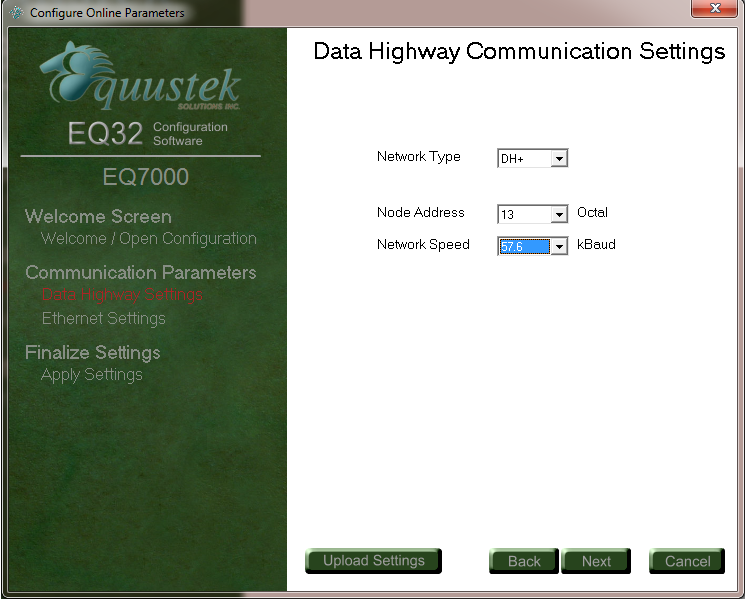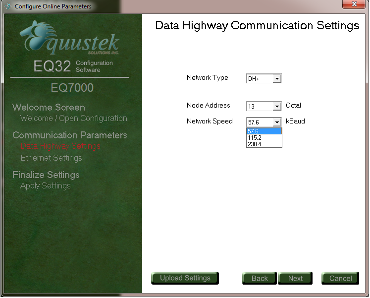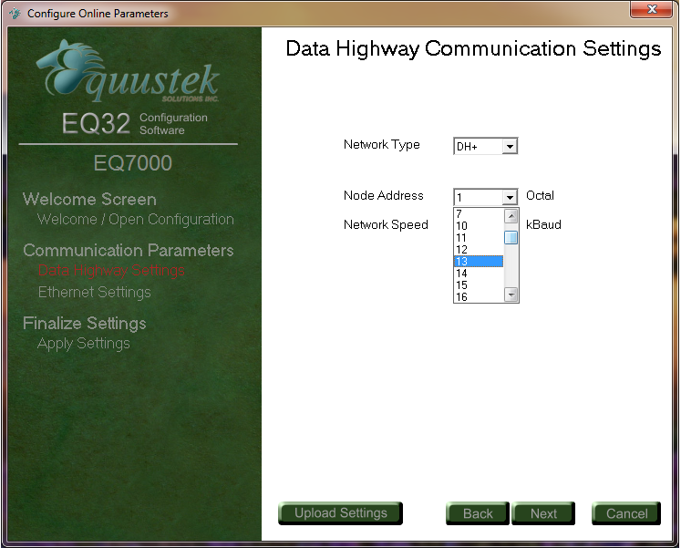 Select a node address number for the EQ7000 (please make sure this node does not exist on your DH+ Network).