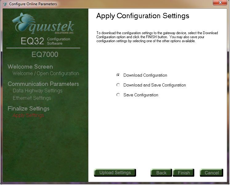 Select download configuration option then click Finish to download configuration to the EQ7000.