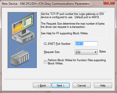 Enter Ethernet port 44818 for Ethernet IP, and the size of requested number of bytes and click Next.