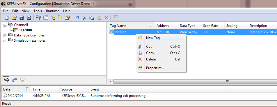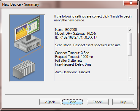 Accessing Allen Bradley DH+ PLC with EQ7000 using Ethernet IP Driver from Kepware KEPServerEX.