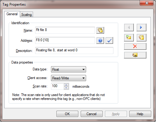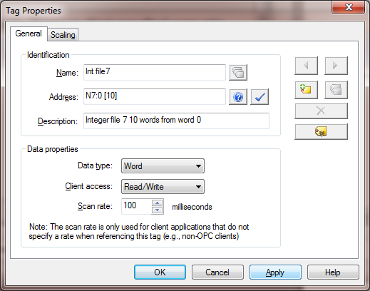 Enter tag ID, in this tag example we are requesting integer file 7, 10 words starting at word 0. Then click Apply.