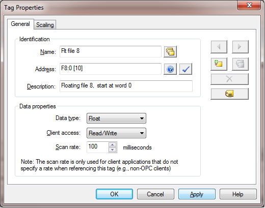 Enter tag ID in this tag example we are requesting Floating point file 8, 10 words starting at word 0. Then click Apply.