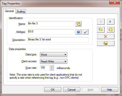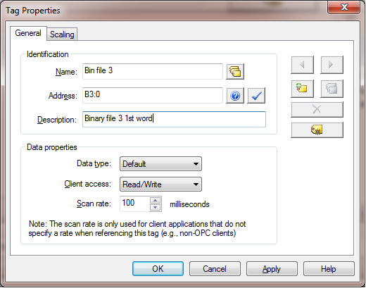 In this tag example we are requesting Binary file 3, 1 words starting at word 0. Then click Apply.