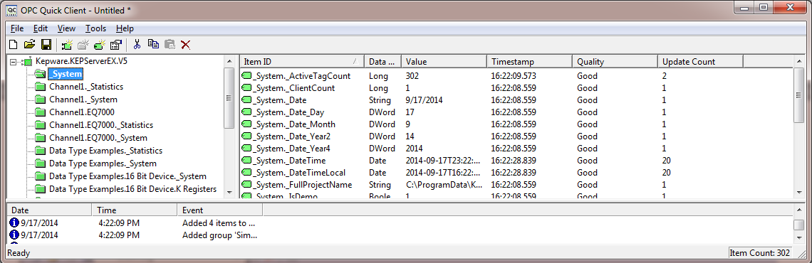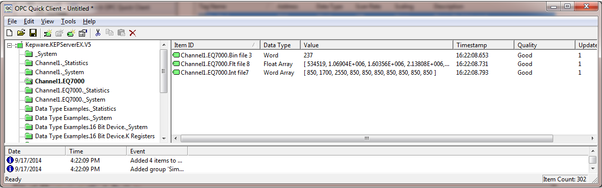 In this application note Channel1.EQ7000 then you can see all tags requested earlier as shown below.