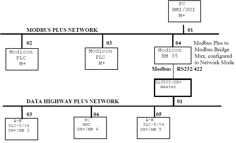 Special consideration should be given to the Modbus and DH+ addressing to avoid duplication of network
